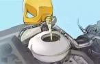 2)加注自动变速箱油,准备进行自动变速箱油更换作业前,从加液口加入准备更换的新油。
